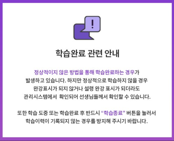 학습종료 버튼을 반드시 누른 후 종료를 해야해요!