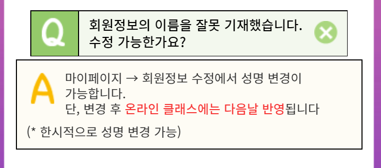 단, 온라인 클래스에는 다음날 변경이 됩니다!